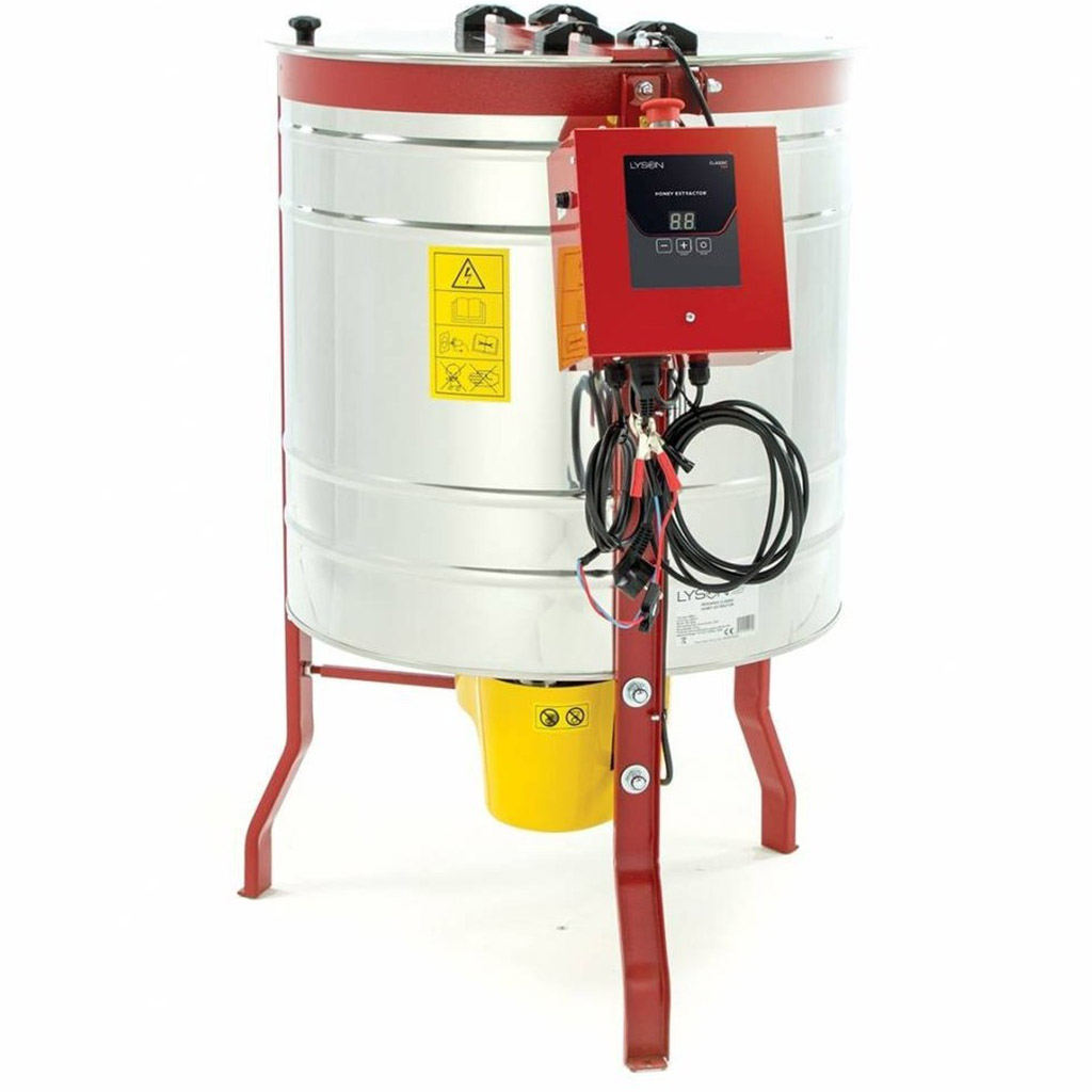 Motor o výkonu 250 W je umístěn ve spodní části medometu a zajišťuje tichý a plynulý chod. Inovovaná řídící jednotka umožňuje napájení jak ze standardní sítě 230 V, tak z 12V zdroje – například autobaterie nebo transformátoru. Tato univerzálnost ocení zejména včelaři, kteří vytáčejí med přímo na stanovišti bez přístupu k elektrické síti.